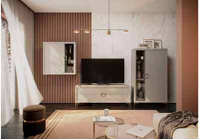 Шкаф Дольче со стеклянными полками (4 шт.) и полками ЛДСП Кашемир серый
