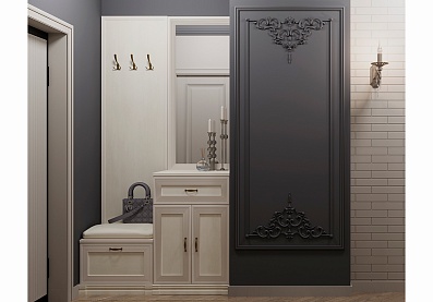 - Полка АГ-025.03 навешивается на стену на декоративных менсолодержателях (МакМарт);